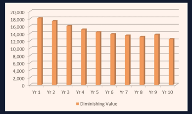 Over the first five years, you might see higher deductions in the early years then a gradual taper as some plant items run through their effective lives. If you drew a simple bar chart with years one to five along the bottom and the annual deductions as the bar heights, you would see the first bar as the tallest, with each later bar stepping down slightly over time.
